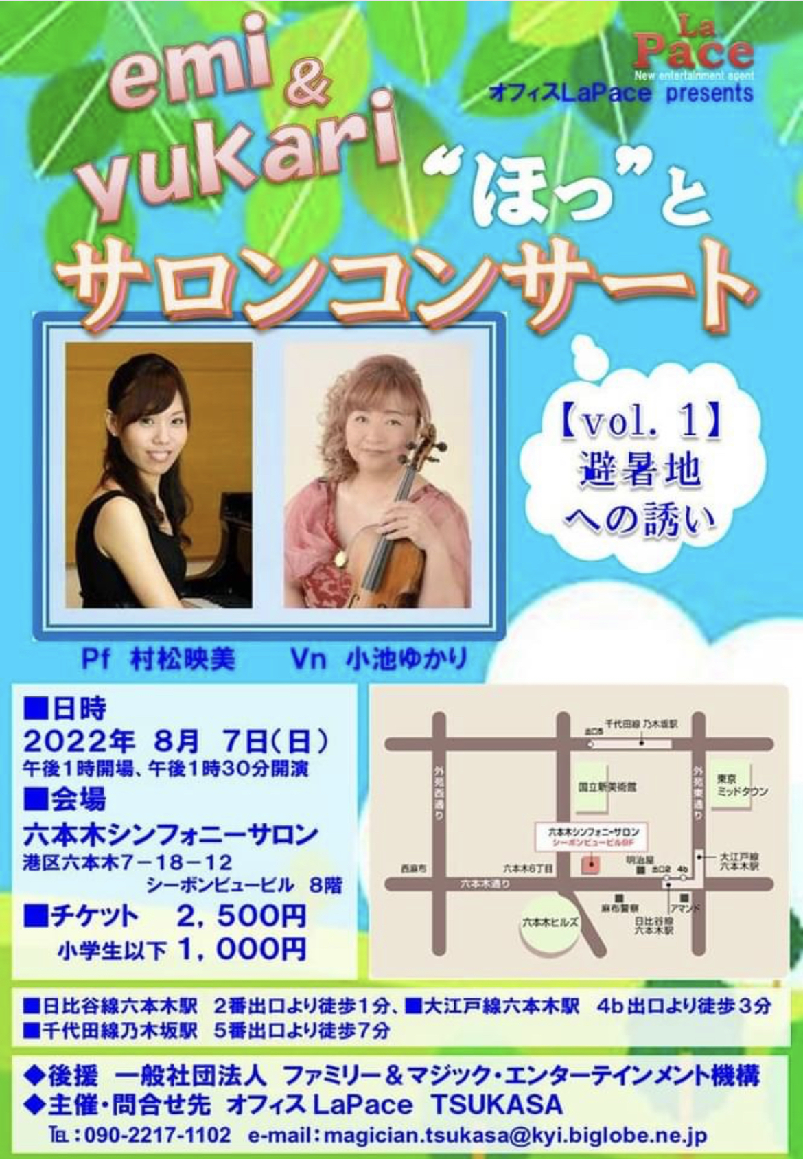 [PR] ×[PR]上記の広告は3ヶ月以上新規記事投稿のないブログに表示されています。新しい記事を書く事で広告が消えます。 サロンコンサートのお知らせ 猛暑が続いておりますね… 夏は始まったばかりなのにもうバテバテです。 blogは随分ご無沙汰になってしまいましたが、サロンコンサートのお知らせです。 いつもご一緒させて頂いているヴァイオリンの小池ゆかり先生と、六本木のサロンでコンサートを行います。 クラシックに映画音楽、様々な曲を「避暑地への誘い」をテーマに、お客様に涼しい爽やかな気持ちになって頂けたらと思います。 是非、足をお運びください。 PR コメント コメントを書く コメントを書く コメント送信