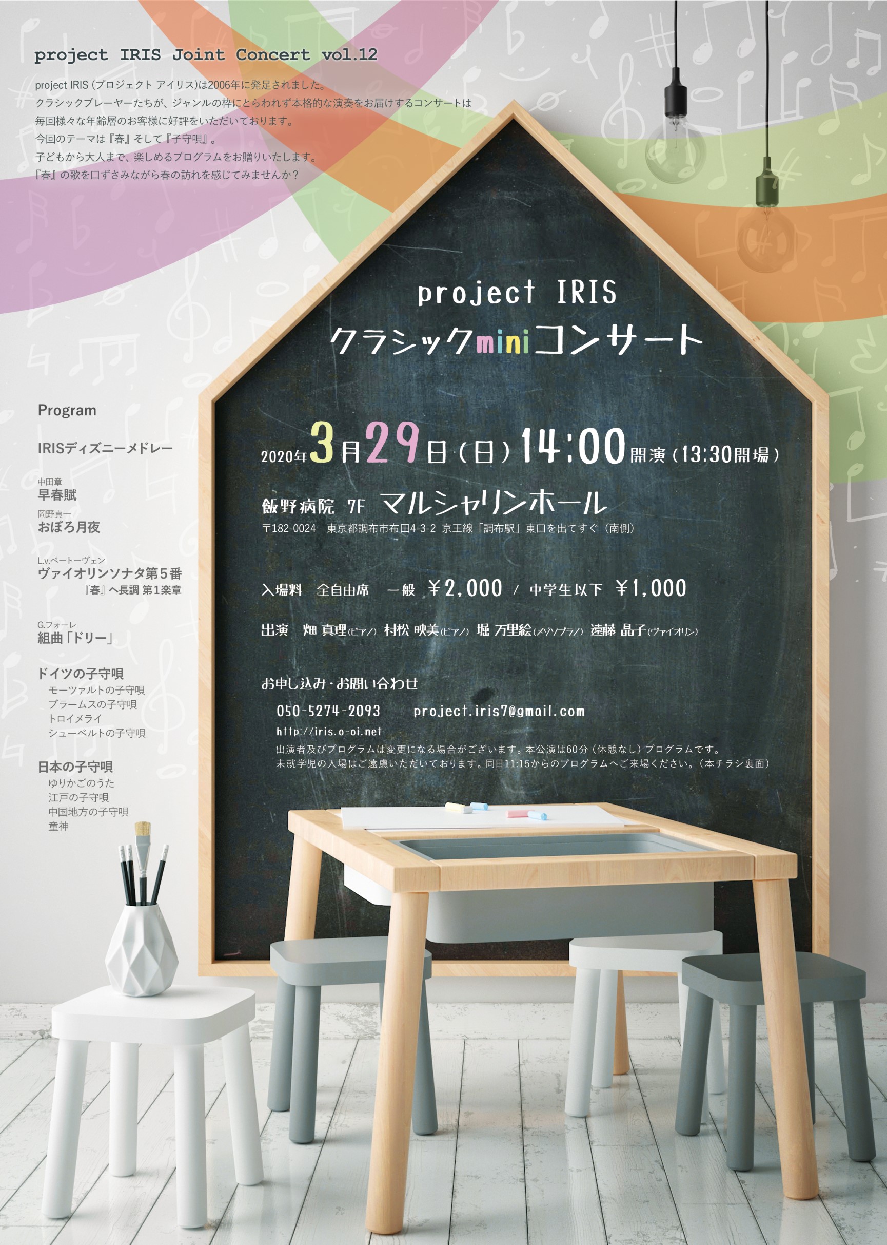今年は3月29日に、0歳から楽しめる音楽会と、子供から大人まで楽しめるミニコンサートの2公演を行います。