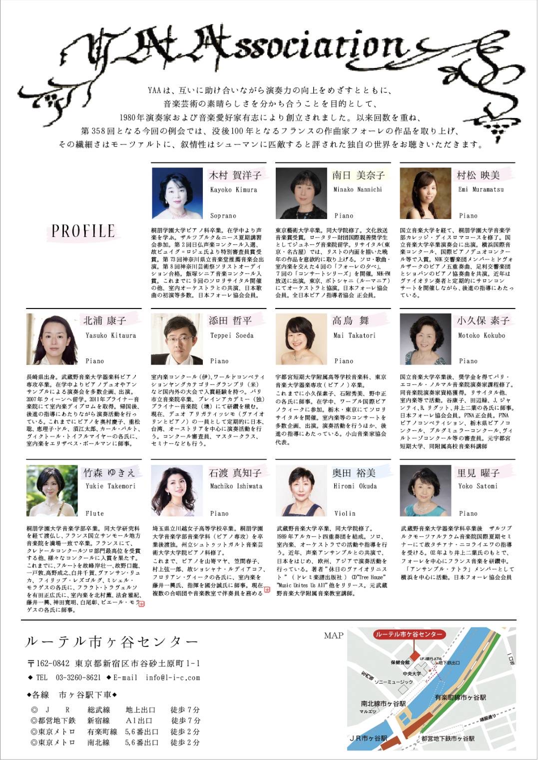 YAAのコンサートに参加させて頂くのは初めてでしたが、響きのとても良いホールで素晴らしい出演者の皆様とご一緒出来て、本当に楽しく素敵な経験となりました。